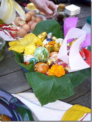 Funnily enough, there was a sprinkling of chocolate eggs around, but no one ate any of them – even the children ignored them in favour of all the luscious foods. But they do make nice decorations!